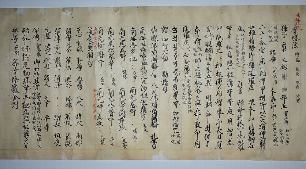 ご案内の6巻のうち、図像の線の美しさが際立つ巻です。神護寺の朱印入。