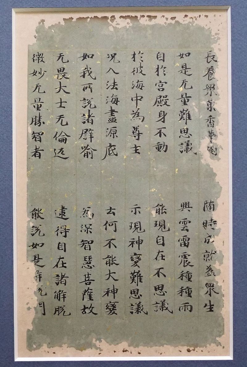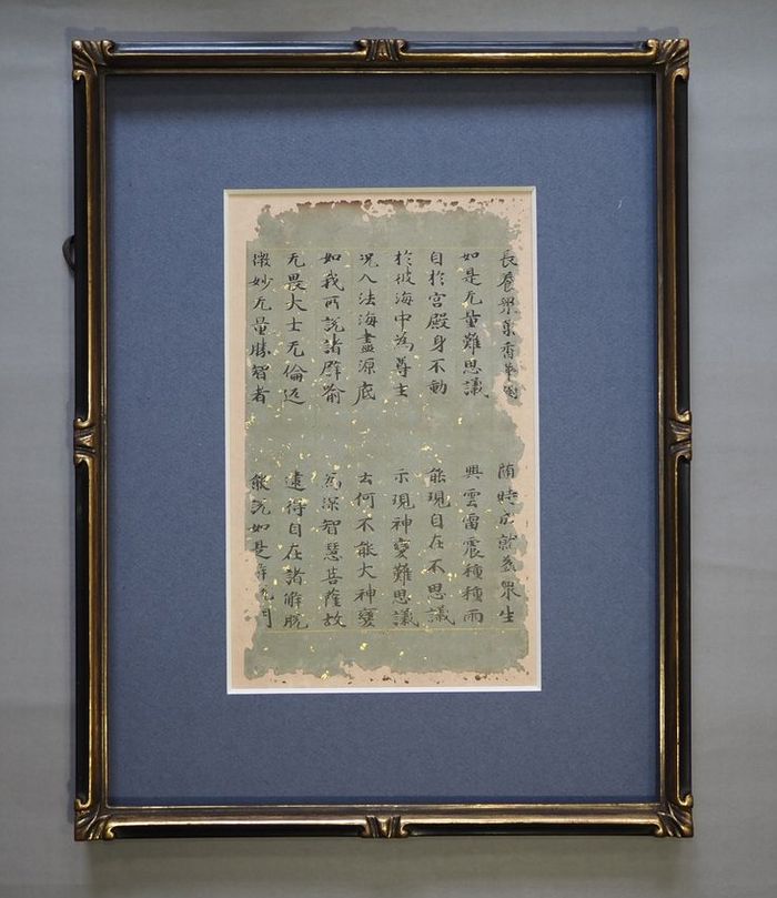 藍紙墨華厳経巻第七、平安時代後期(11世紀)、額装