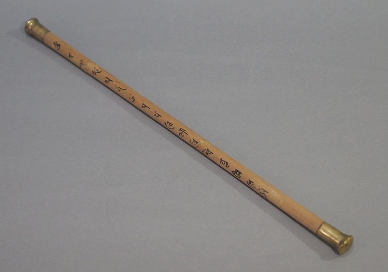 軸棒には17文字の梵字が墨書され、両端に撥形の鍍金の軸先が付けれています。