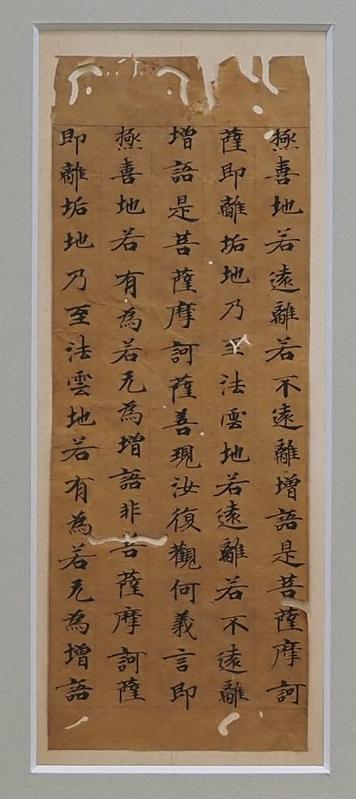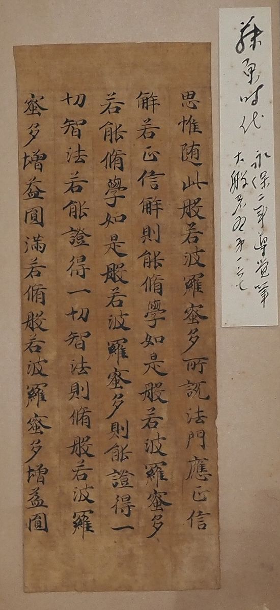 断簡に書かれた文字は、大般若経の第百六十六および百六十七に繰り返される経文です。