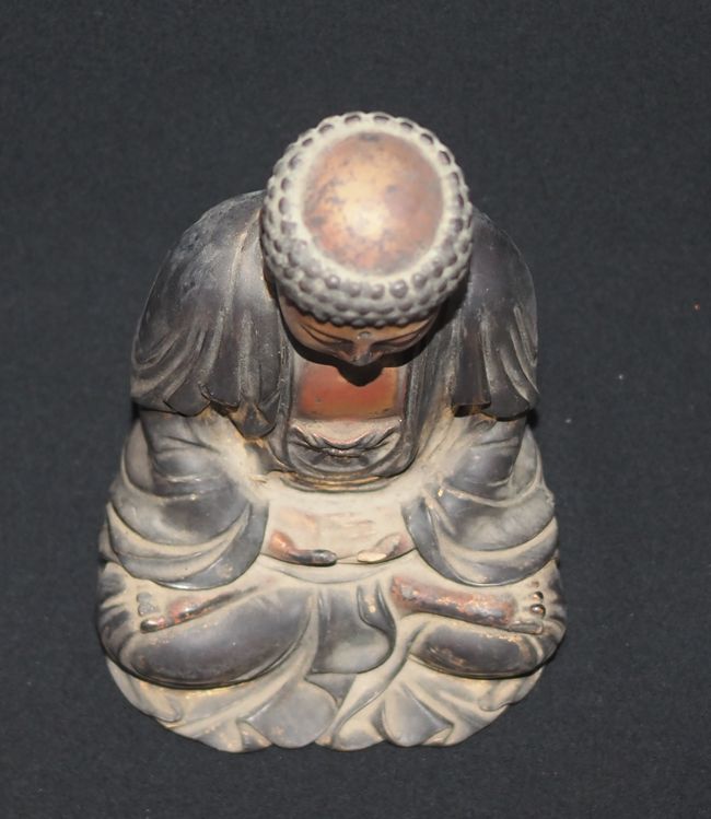 保存状態は白毫に嵌めこまれていた石の欠損、定印を結んだ左親指の破損、鼻先のスレがあります。