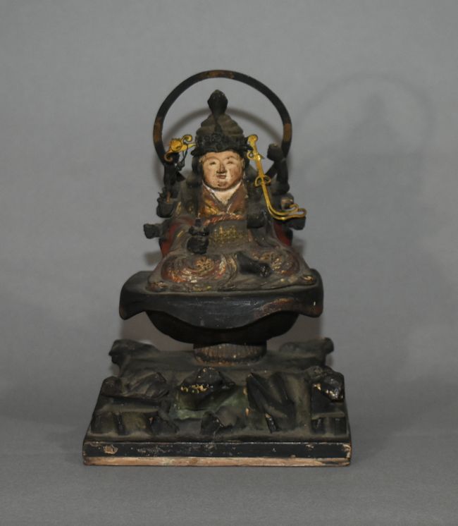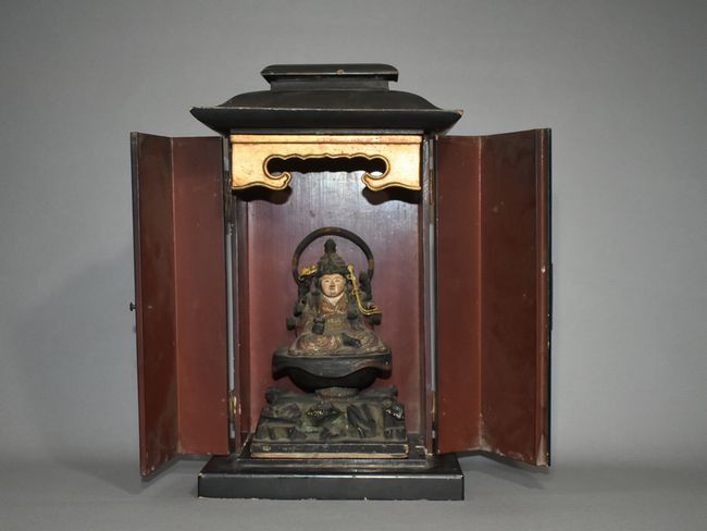 民間で持仏あるいは福神として奉られていたものと思われますが、オリジナルの立派な角厨子(つのずし)に入っています。